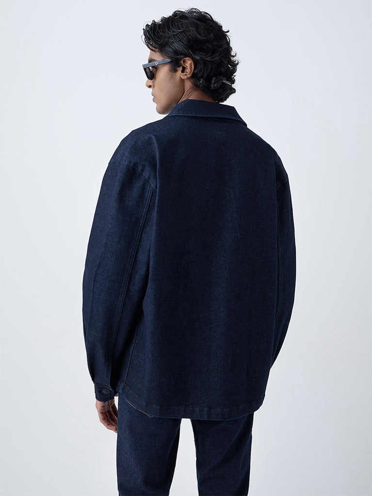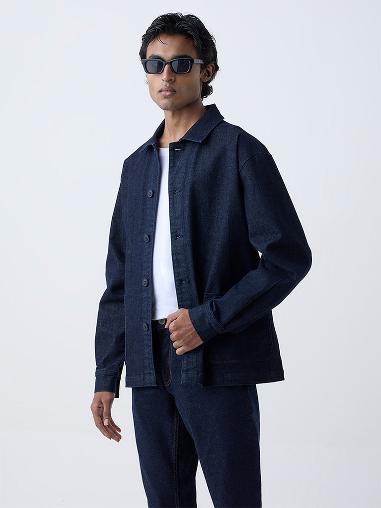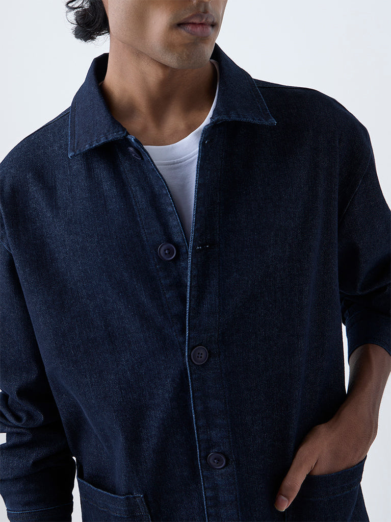 This navy denim shacket from Ascot elevates casual dressing with its relaxed frame and refined detailing. Crafted from a premium cotton-rich fabric, it offers the perfect balance of structure and comfort. A sharp collar, button placket, and full sleeves define its profile, while dual front pockets bring together utility and sophistication.