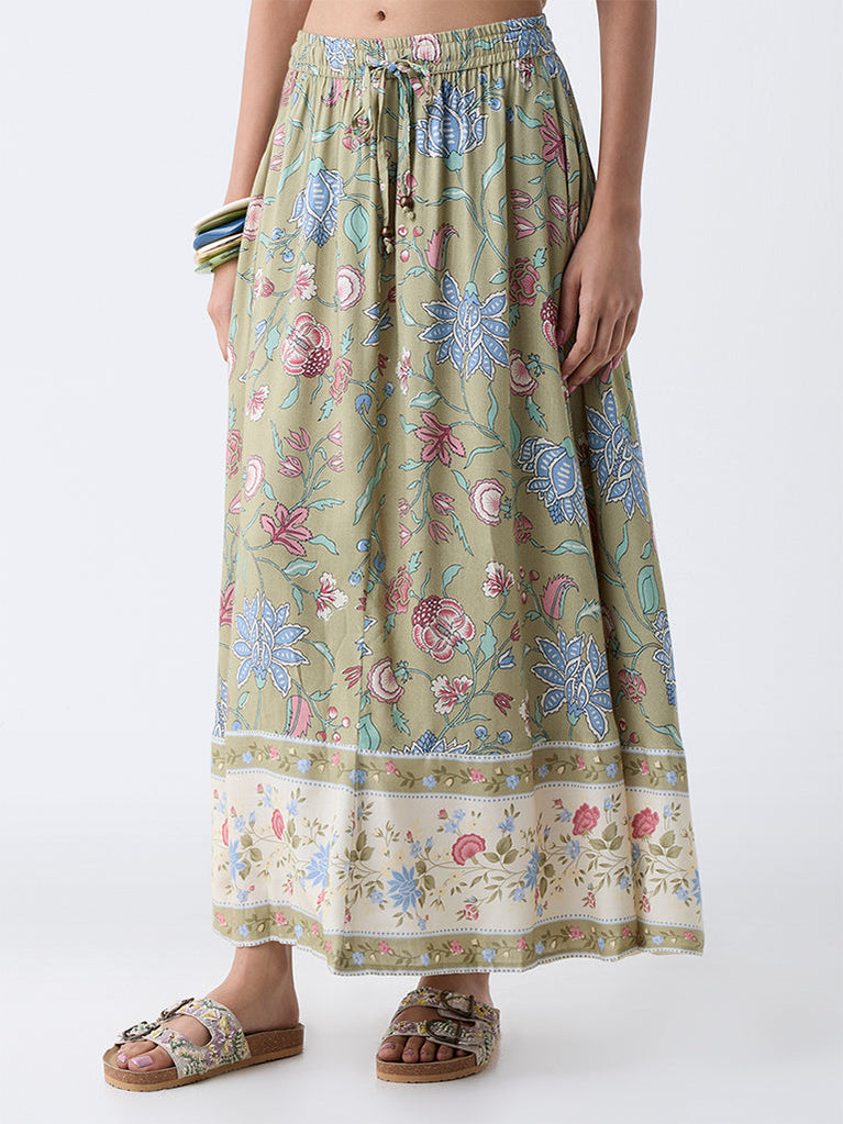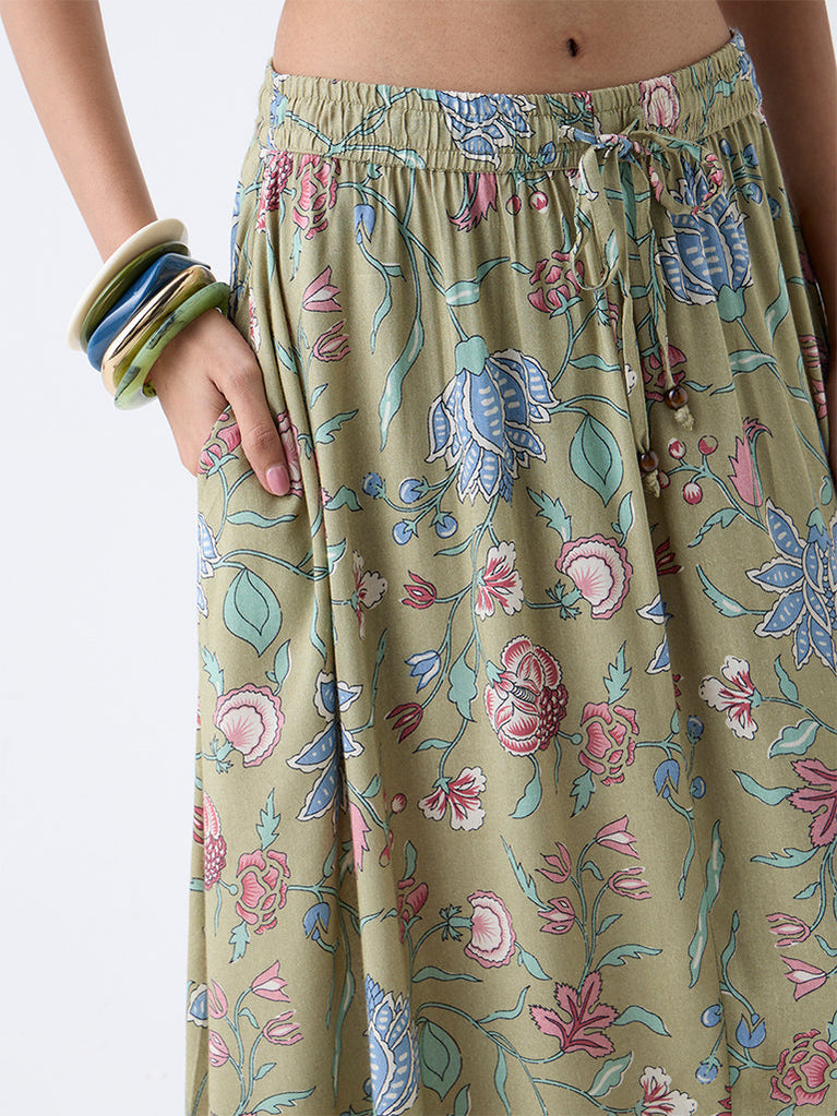 Refresh your outdoor edit with this sage skirt from Bombay Paisley. Adorned with playful botanical prints for contemporary charm, it is tailored from a lightweight fabric, ensuring all-day comfort. The smooth elastic waistband with adjustable drawstrings offers a flexible fit, while side pockets lend a touch of functionality to its design.