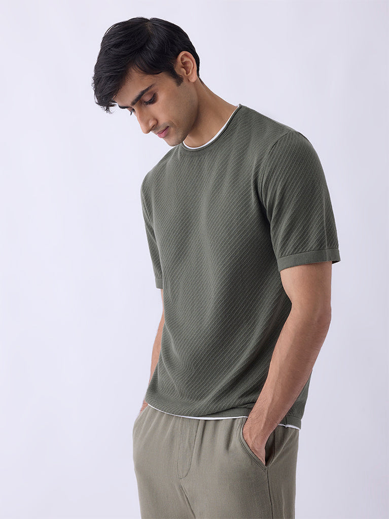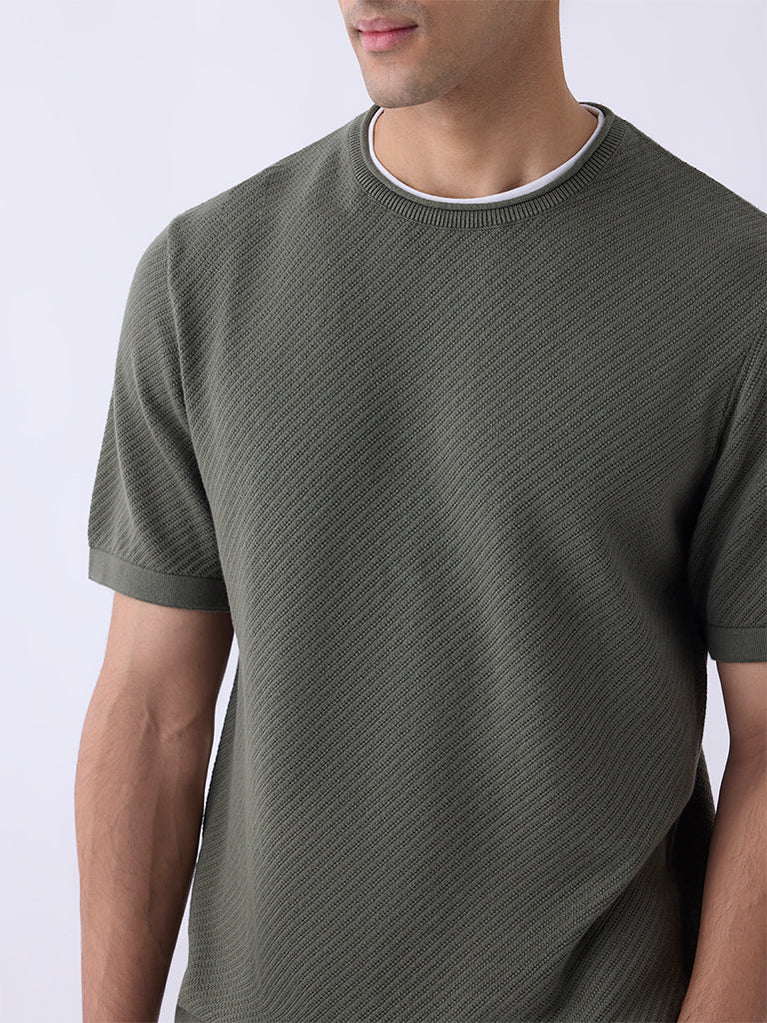 ETA Olive Woven-Textured Relaxed-Fit Cotton T-Shirt