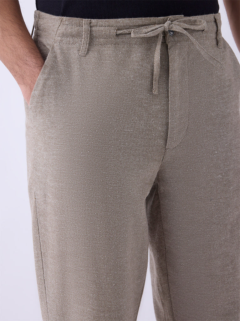 ETA Taupe Solid Relaxed-Fit Mid-Rise Pants