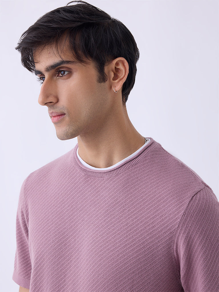 ETA Dusty Pink Woven-Textured Relaxed-Fit Cotton T-Shirt
