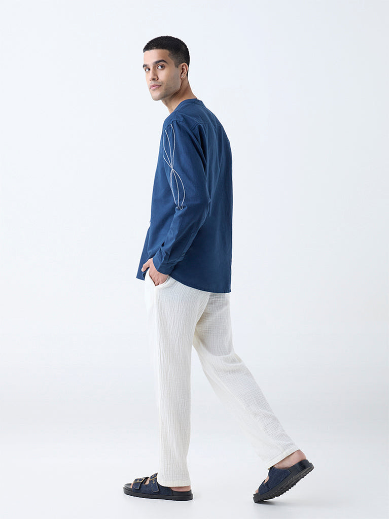 ETA Navy Embroidered Relaxed-Fit Cotton Shirt