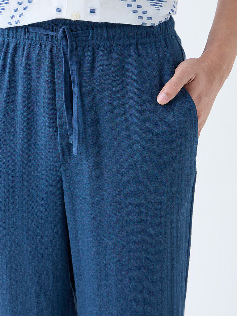 ETA Teal Crinkle-Textured Relaxed-Fit Mid-Rise Cotton-Blend Pants