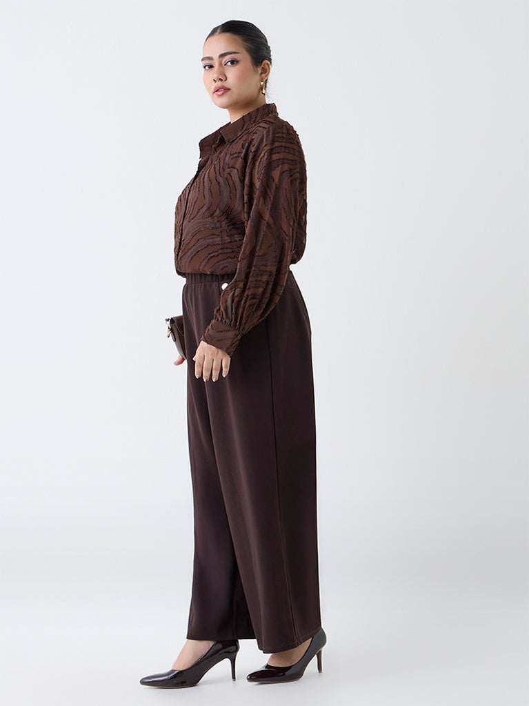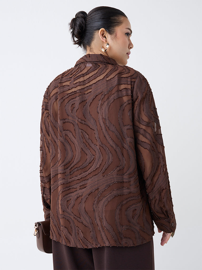 Gia Dark Brown Self-Patterned Shirt with Camisole