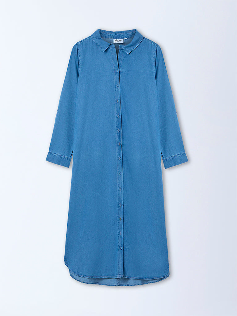 Gia Light Blue Solid Denim Shirt Dress