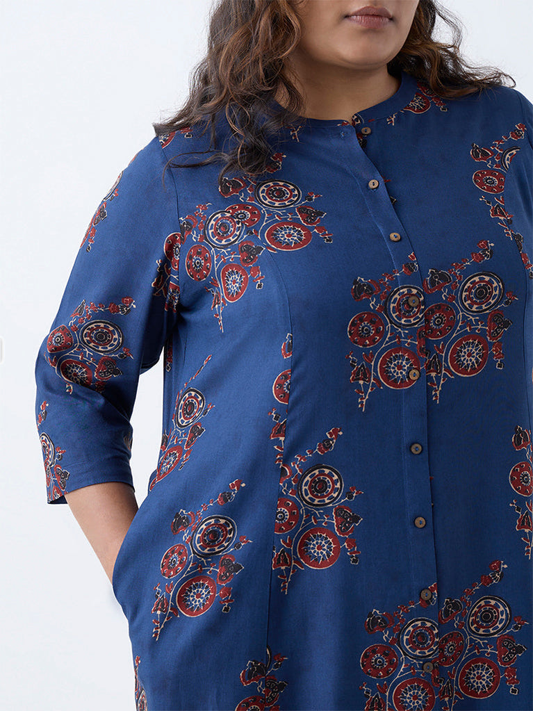 Add a touch of effortless charm to your daily wardrobe with this indigo A-line kurta from Diza. Patterned with an all-over print, it’s styled with a mandarin collar, button-down front, three-quarter sleeves, and a handy side pocket. Easy to wear and effortlessly chic, it’s your go-to piece for casual meetups or relaxed workdays.