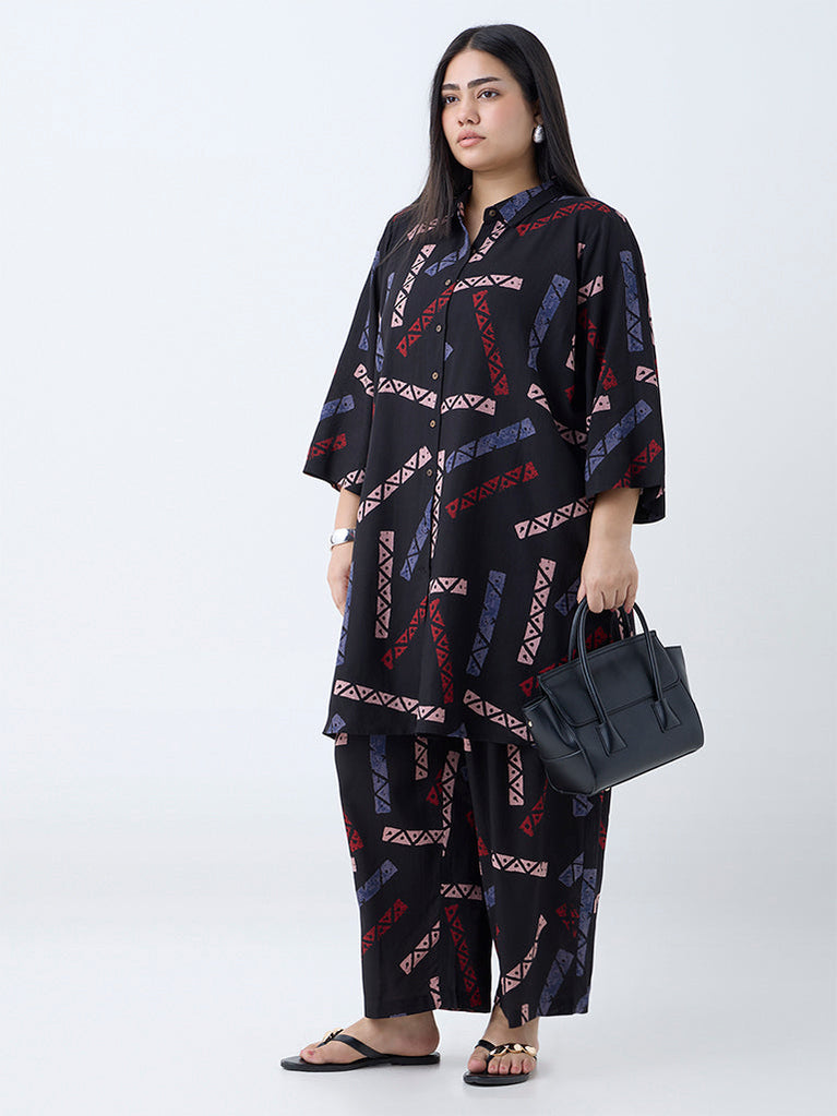 Add a contemporary edge to your ethnic line-up with this black kurta from Diza. Defined with abstract prints, it’s milled from an ultra-lightweight fabric and finished with a collar, button placket, and three-quarter sleeves. A slip pocket adds a touch of everyday practicality.