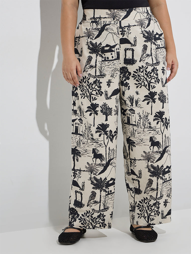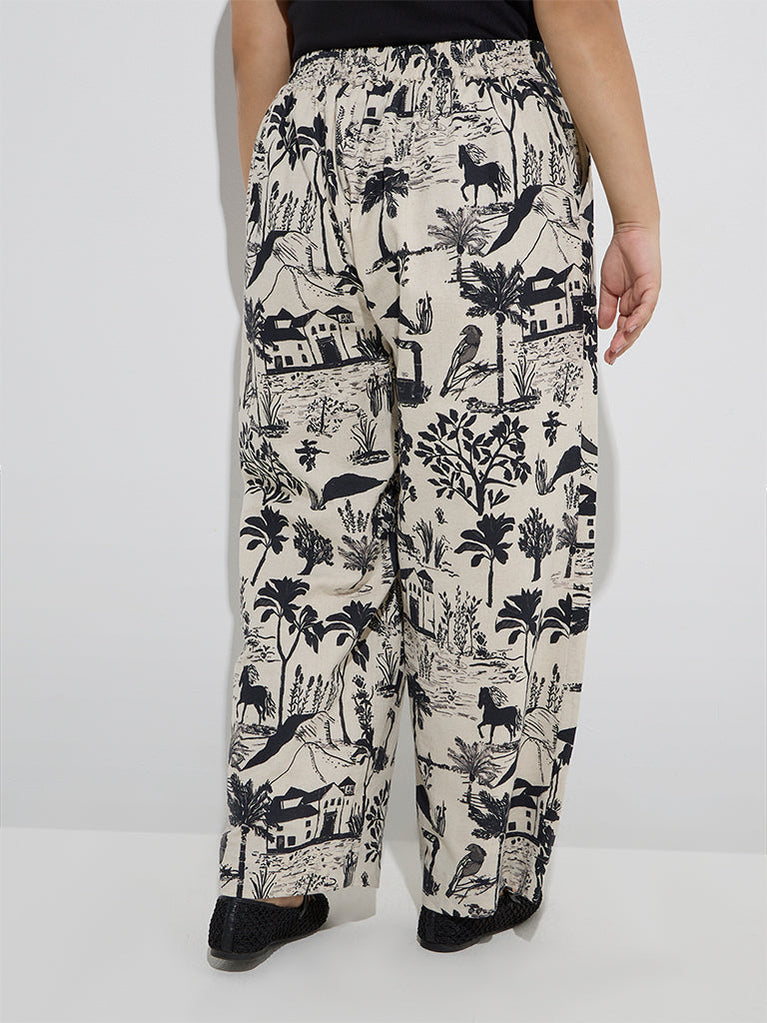 Gia Beige Scenic-Inspired High-Rise Cotton-Blend Pants
