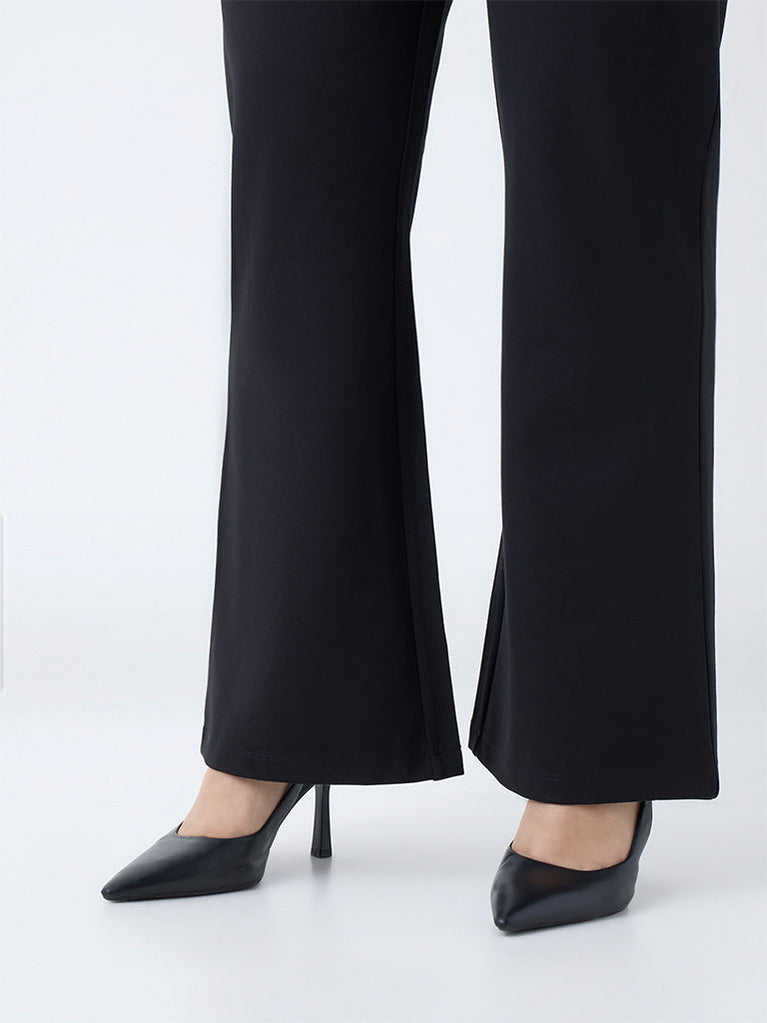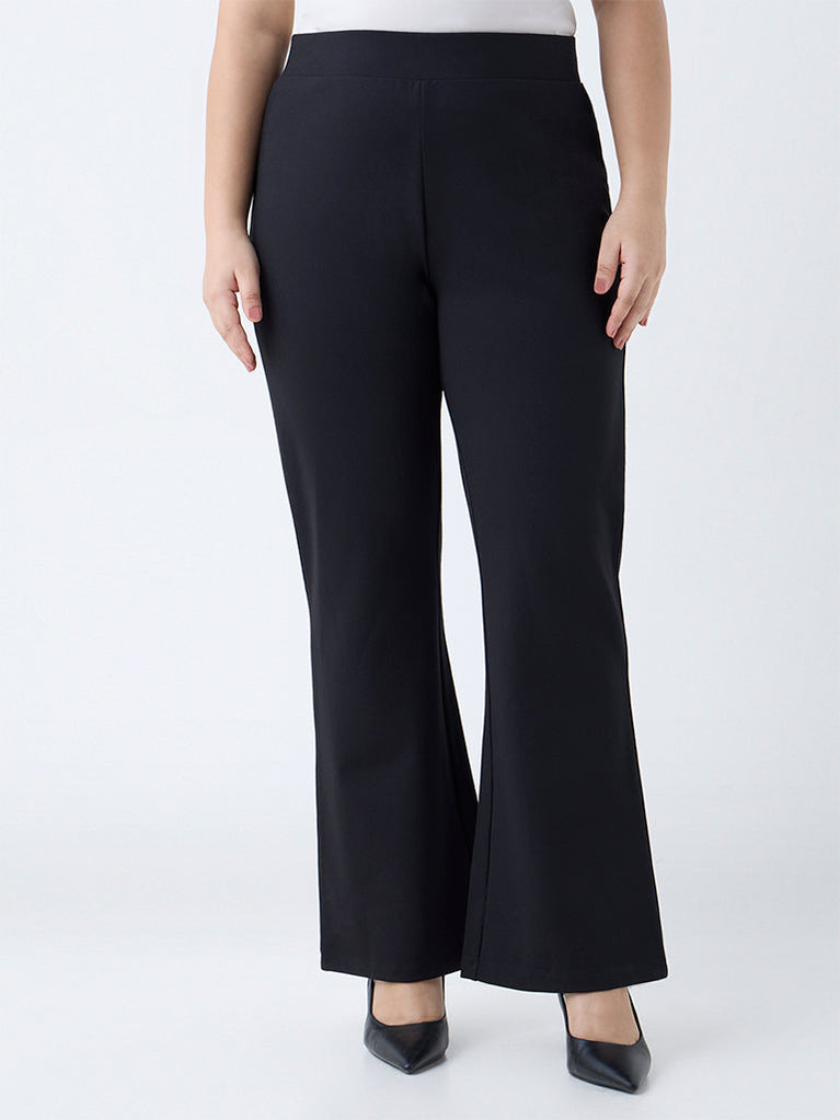 These black trousers from Gia are tailored in a flattering bootcut silhouette that elongates the frame. Crafted from stretch-infused fabric, they offer all-day ease and movement, while the elasticated waistband ensures an adjustable fit.