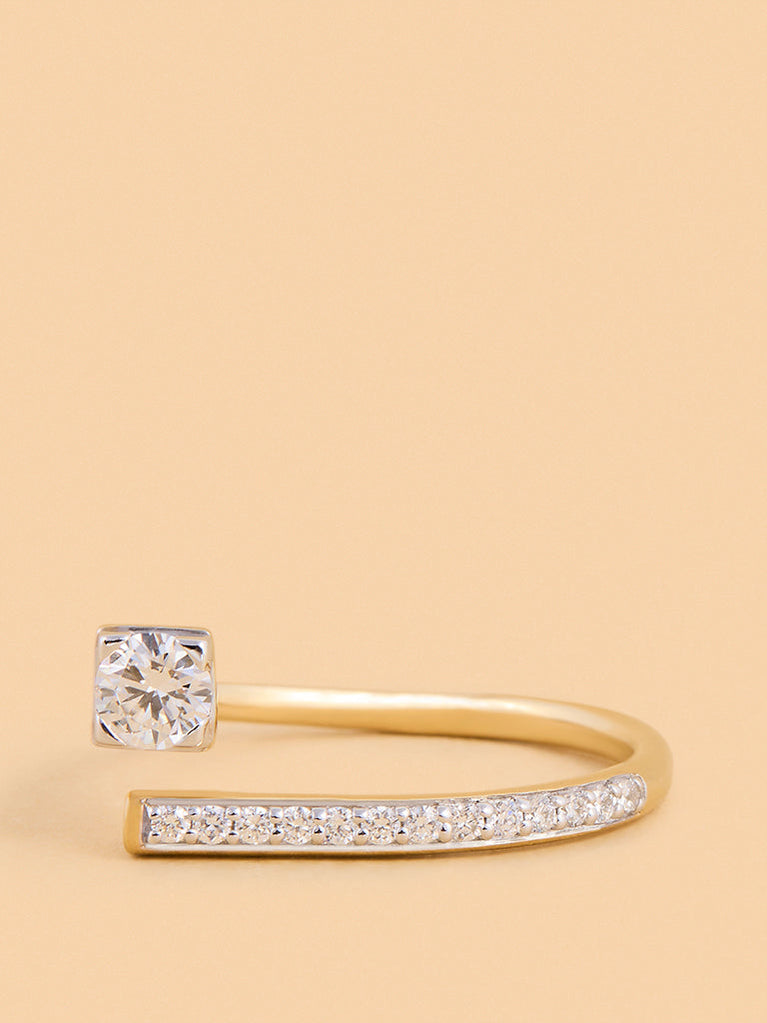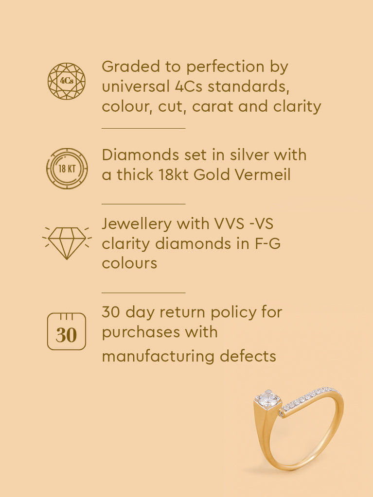 Stand out with this edgy lab diamond solitaire ring. Made in gold vermeil, it combines bold design with stunning brilliance for a striking statement.