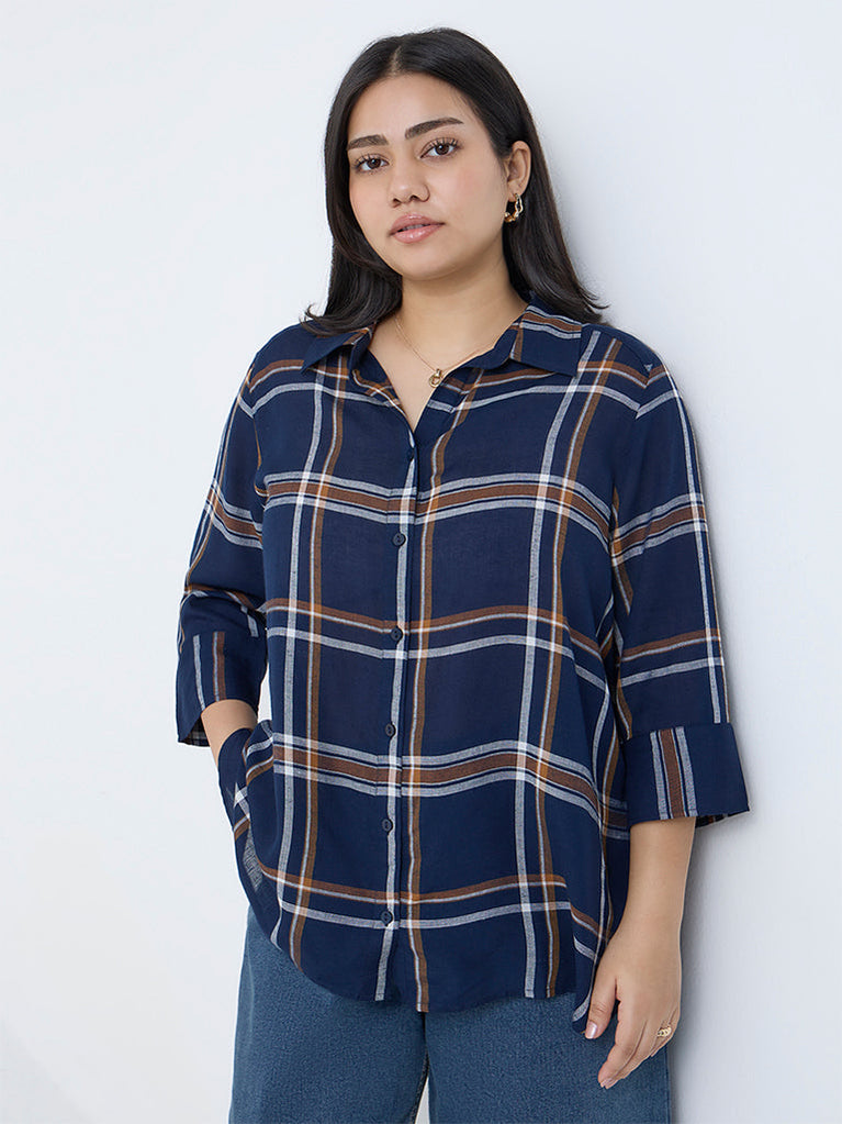 Gia Navy Checks Design Shirt