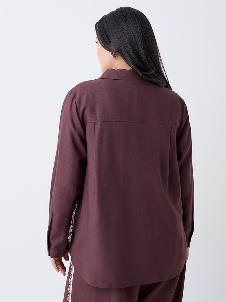 Gia Dark Brown Embroidered Shirt