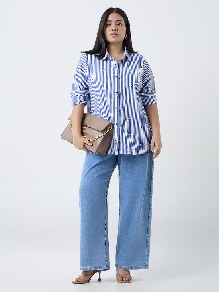 Gia Blue Striped Cotton Shirt