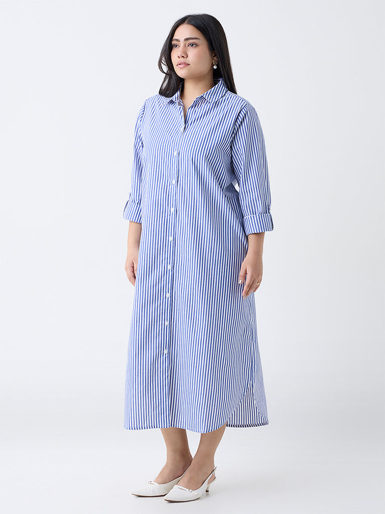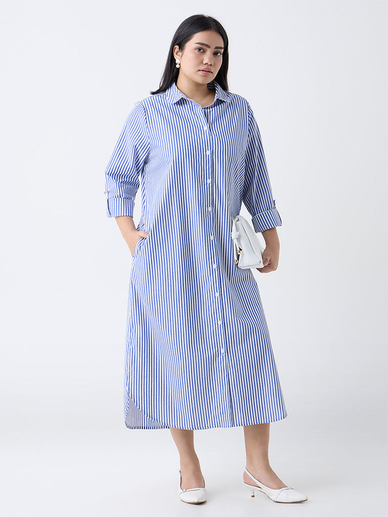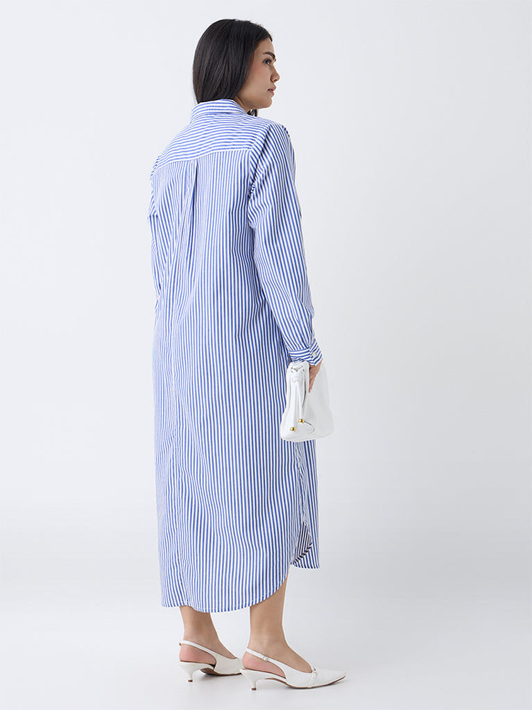 Gia Blue Striped Cotton Shirt Dress