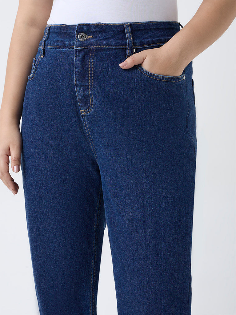 Built for comfort that does not compromise confidence, these dark blue denim jeans by Gia blend structure with ease for everyday wear. Cut from a cotton-blend fabric, they come with an elasticated waistband, adjustable drawstrings and practical side pockets your curve-friendly companion for off-duty styling.