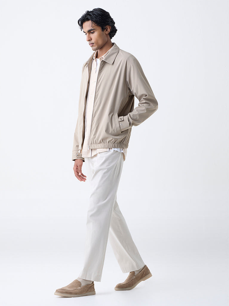 Ascot introduces this beige jacket, sculpted from premium-quality fabric in a relaxed-fit silhouette. It features a spread collar, full sleeves, a zip-up front and kangaroo pockets for a modern finish. A smart outer layer that brings effortless polish to everyday casual looks.