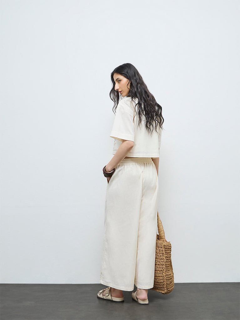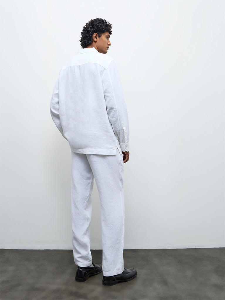 Ascot White Relaxed-Fit Mid-Rise Linen Trousers