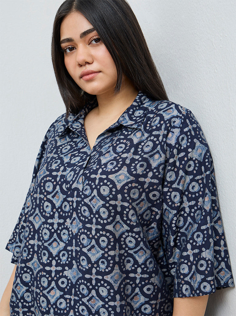 Diza Indigo Printed High-Low Tunic