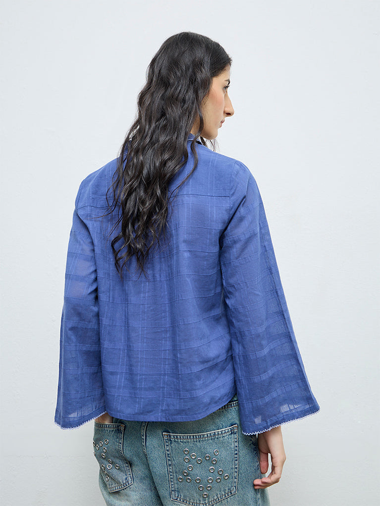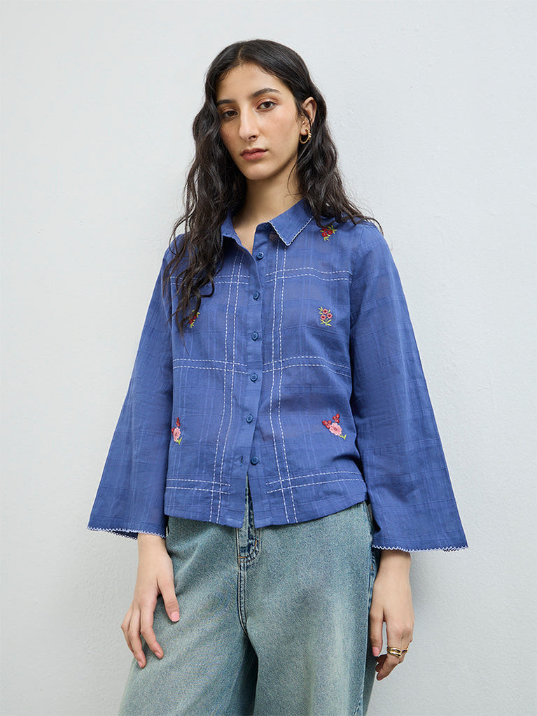 Bombay Paisley Blue Floral Embroidered Cotton Shirt