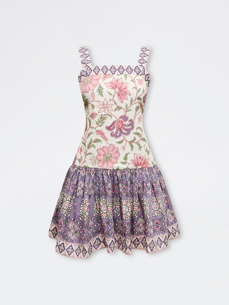 Bombay Paisley brings a fresh play of floral patterns to everyday dressing with this pink dress. The A-line silhouette features a square-neck, a sleeveless profile, a contrast flared hem and a concealed side zipper. Crafted from pure cotton fabric, it offers an ultra soft feel, making this piece well suited for relaxed daytime plans.