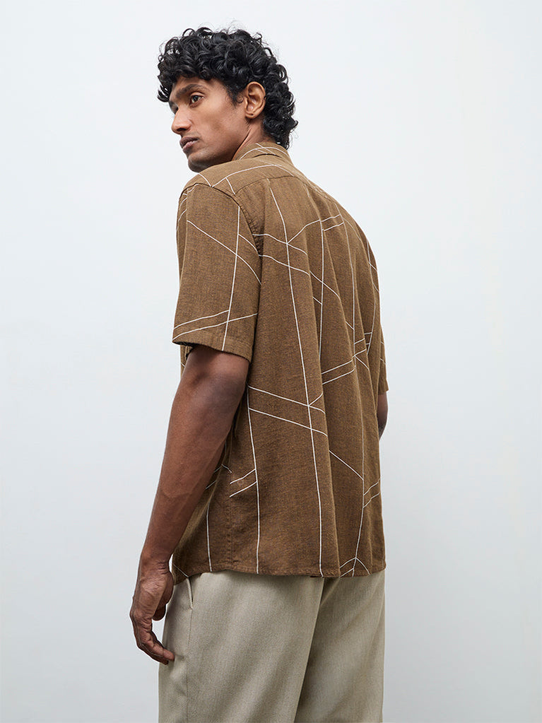 Ascot Brown Knit-Textured Relaxed-Fit Shirt