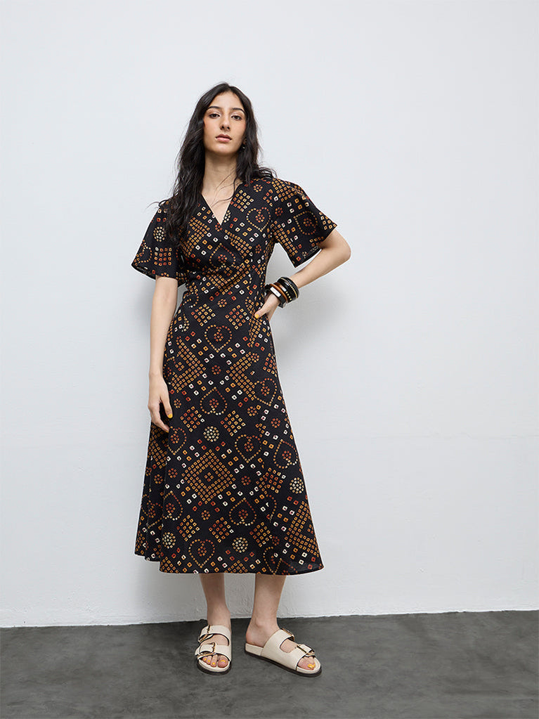 Bombay Paisley Black Printed Cotton Asymmetrical Dress