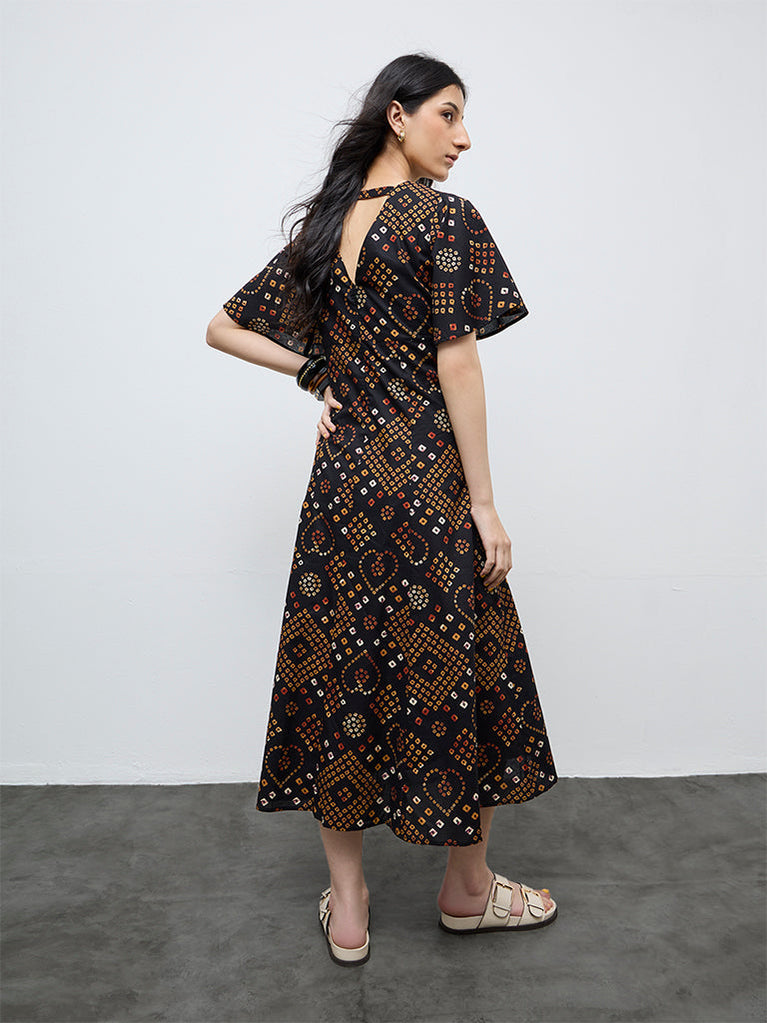 Bombay Paisley Black Printed Cotton A-Line Dress