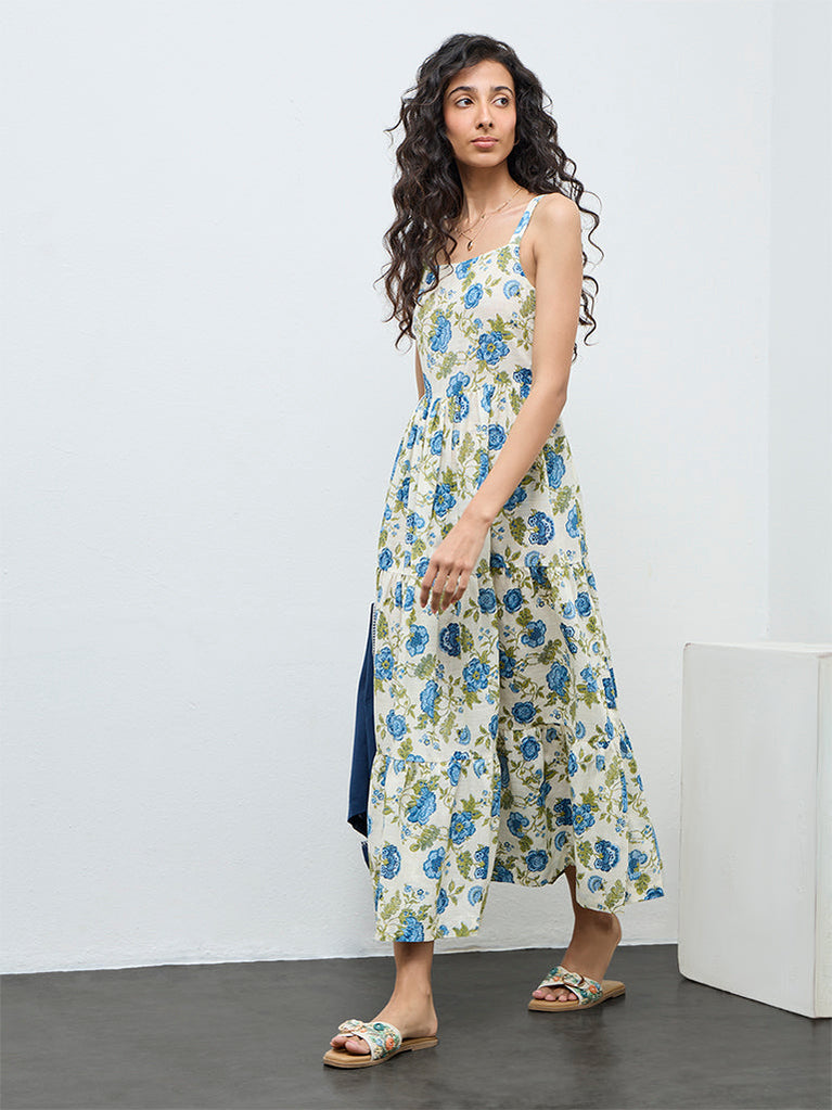 Bombay Paisley White Floral Cotton Tiered Dress