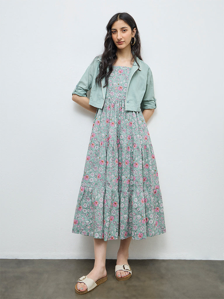 Bombay Paisley Mint Floral Cotton Tiered Dress with Jacket