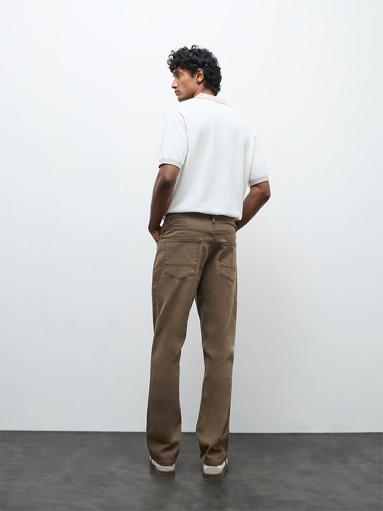 Ascot introduces these taupe jeans cut in a relaxed silhouette with a mid-rise waist for easy everyday wear. Designed with a buttoned closure, zipper fly, belt loops and a classic five-pocket layout, they balance function with a neat finish. Crafted from a breathable fabric, they deliver lasting comfort suited to regular rotation.