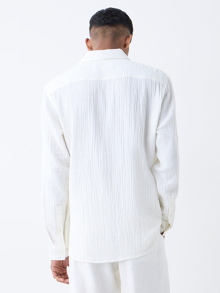 ETA White Crinkle-Textured Relaxed-Fit Cotton Shirt