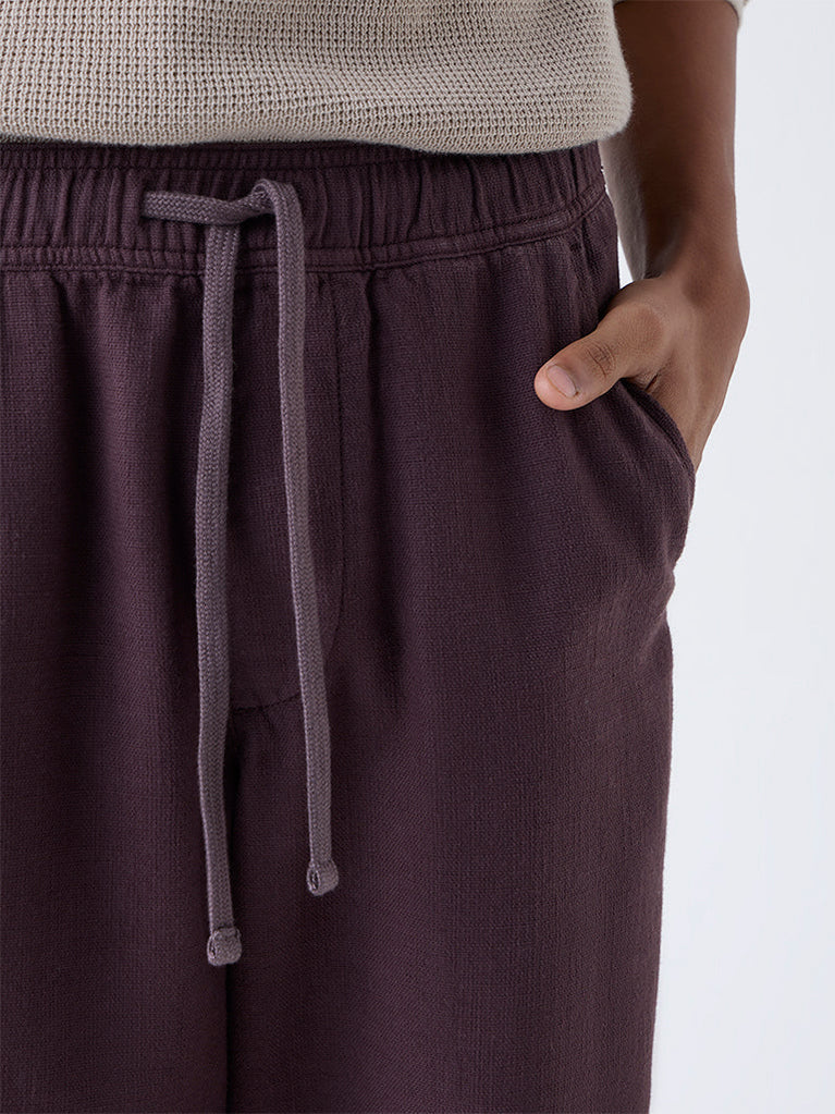 ETA Dark Purple Solid Relaxed-Fit Mid-Rise Cotton Chinos