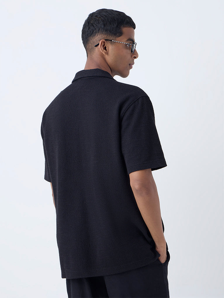 ETA Black Textured Relaxed-Fit Cotton-Blend Shirt