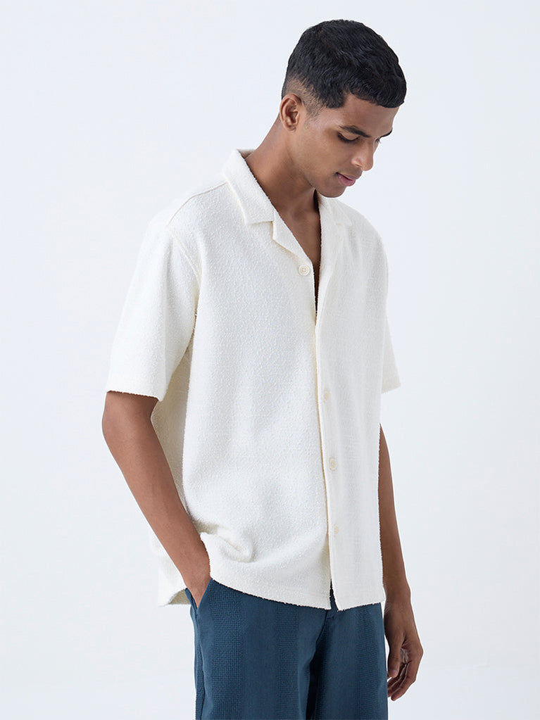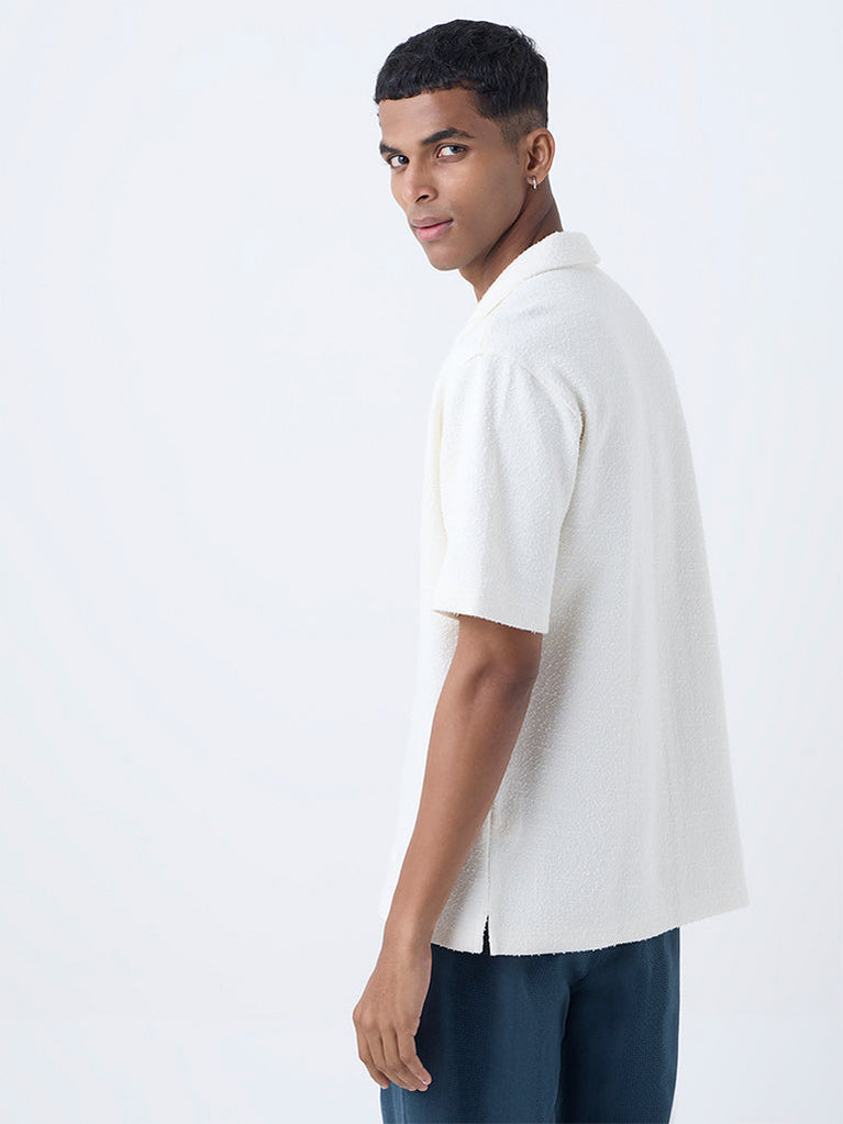 ETA Off-White Textured Relaxed-Fit Cotton-Blend Shirt