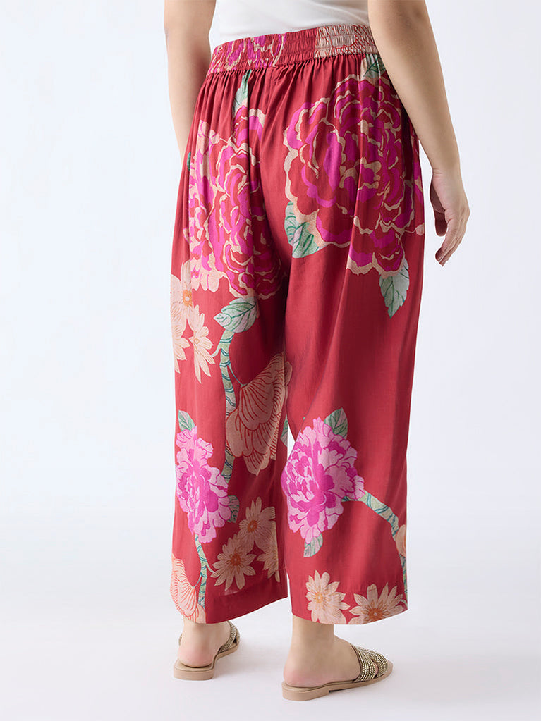 Diza Red Floral Design Ethnic Pants