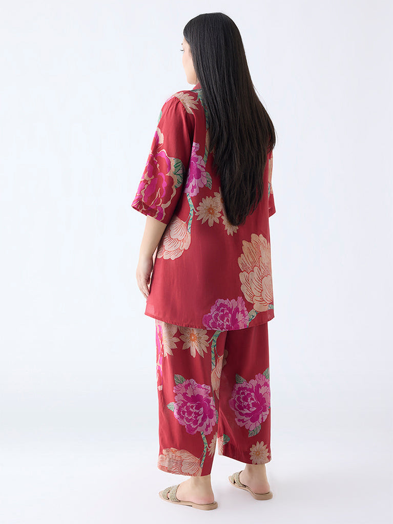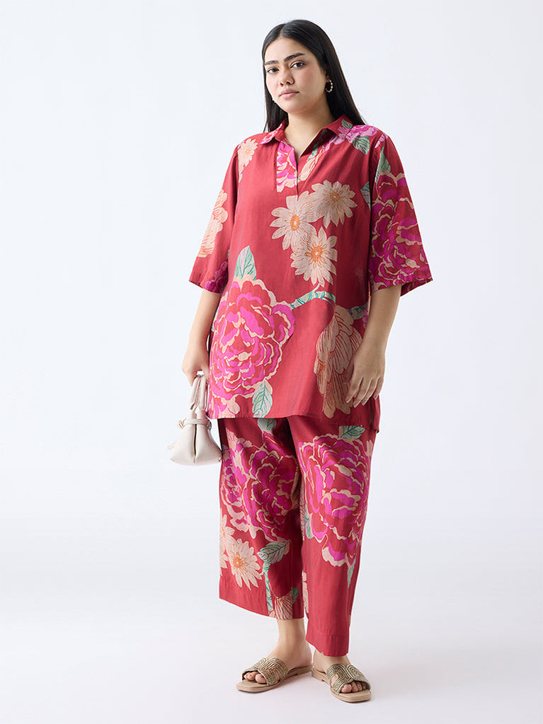 Diza Red Floral Pattern High-Low Tunic