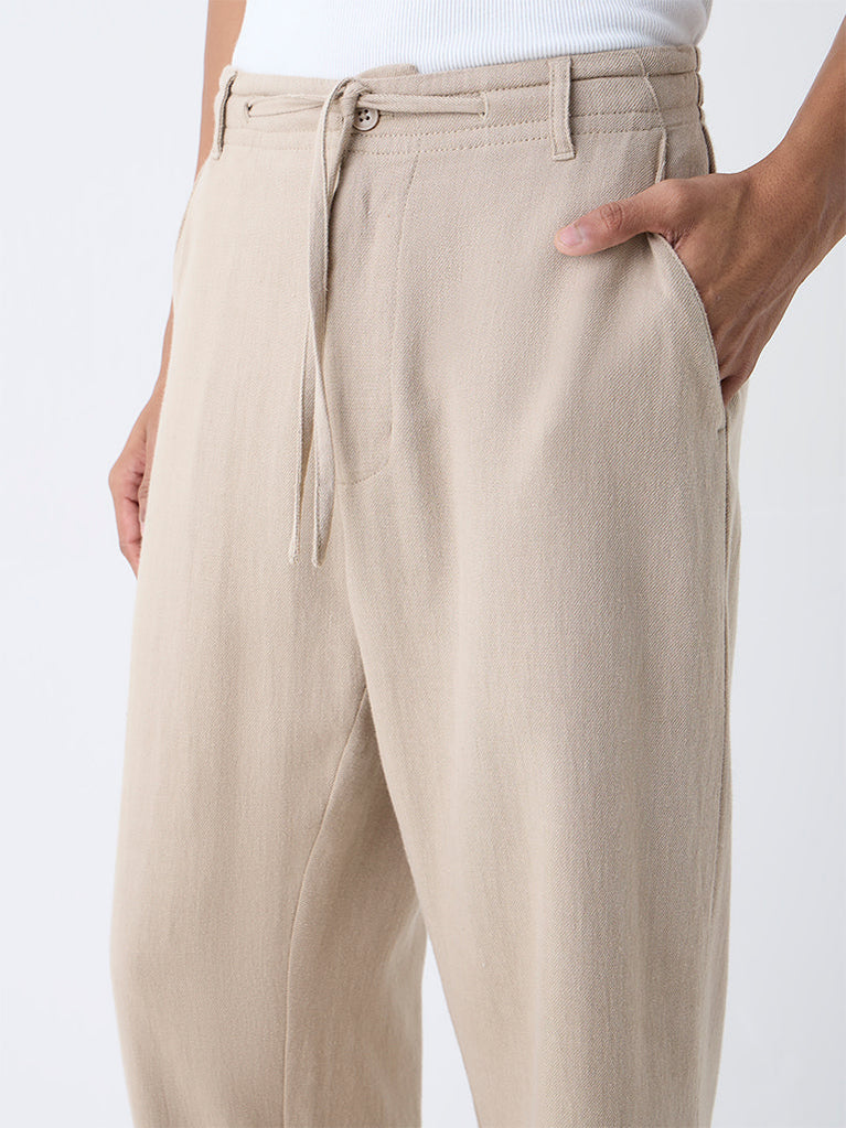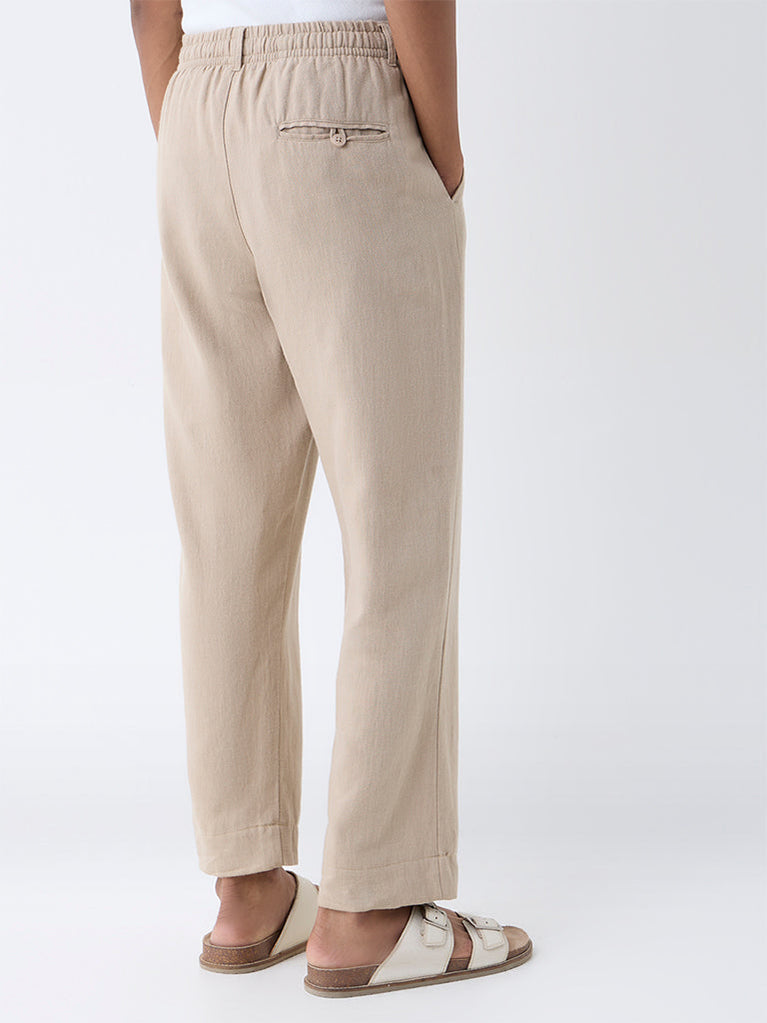 ETA Taupe Solid Relaxed-Fit Mid-Rise Cotton-Blend Chinos