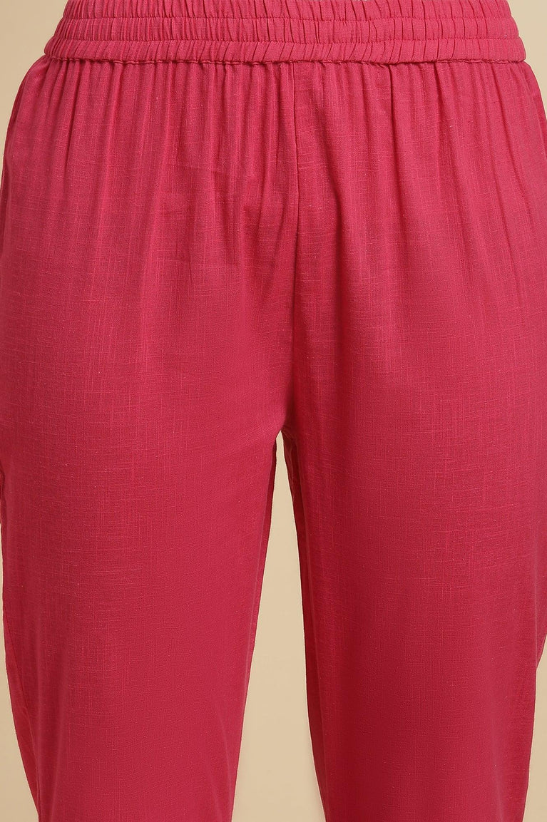 Elegant Yet Stylish! This Kurta Set Is A Must-Have To Spread Your Charm Even In A Light Festive Occasion Or At Home Event. The Set Includes Orchid Pink Solid Kurta Having Embellished V-Neck And Sleeves' Hemline. It Is Paired With Matching Solid Pants And Beautiful Jacquard Dupatta.