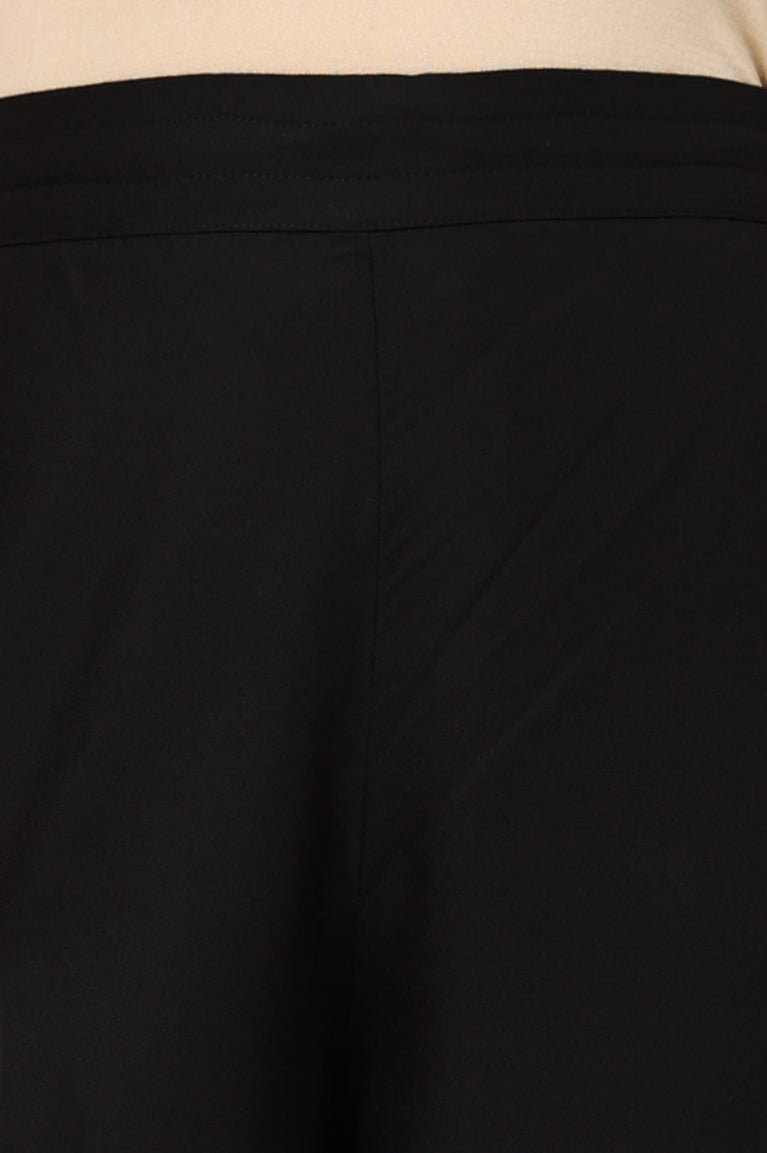 Crafted In Premium Rayon Fabric, Elevate Your Festive Look With This Sophisticated And Stylish Black Solid Parallel Pants. Providing Comfort As Well As Chic Look, These Pants Are A Must-Have For Your Wardrobe. These Pants Comes In Mid-Rise And Has Partially Elasticated Waist Band Which Maximize The Comfort. The Pair Of Pants Provide A Sleek And Streamlined Silhouette. Hemline Of The Pants Are Embellished With Sequined Organza Insert.