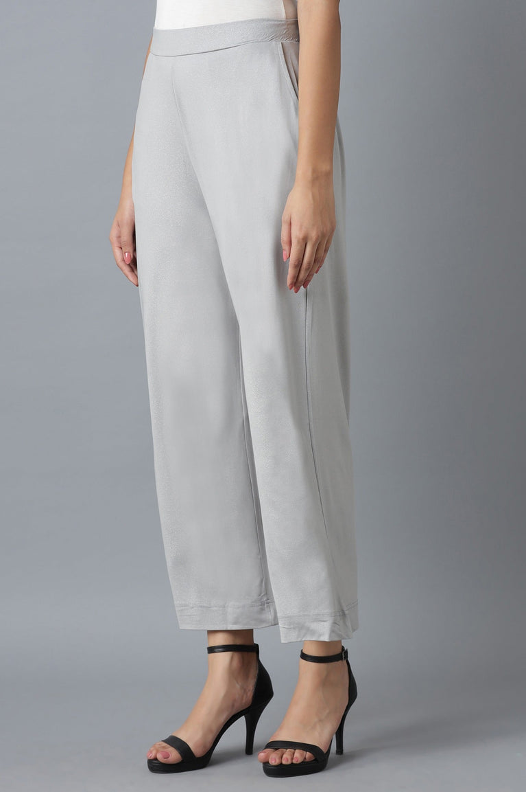 Crafted In Premium Rayon Fabric, Elevate Your Festive Look With This Sophisticated And Stylish Black Solid Parallel Pants. Providing Comfort As Well As Chic Look, These Pants Are A Must-Have For Your Wardrobe. These Pants Comes In Mid-Rise And Has Partially Elasticated Waist Band Which Maximize The Comfort. The Pair Of Pants Provide A Sleek And Streamlined Silhouette. Hemline Of The Pants Are Embellished With Sequined Organza Insert.