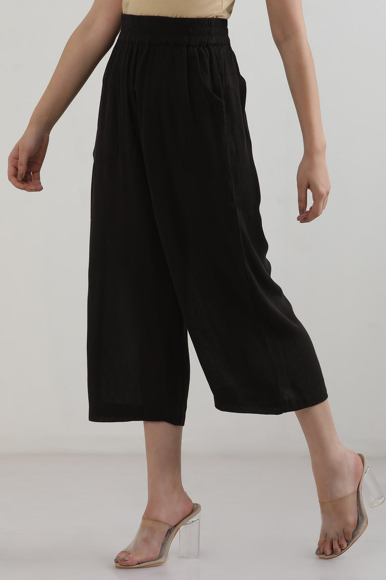 Black Solid Flared Rayon Culottes With Elasticated Waist