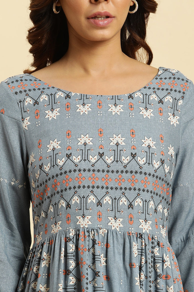 Get Ready For Your Coffee Date With This Pretty Casual Naira Cut Printed Kurta. Crafted In Rayon, The Kurta Has High Slit And Round Neck With Aztec Print All Over.