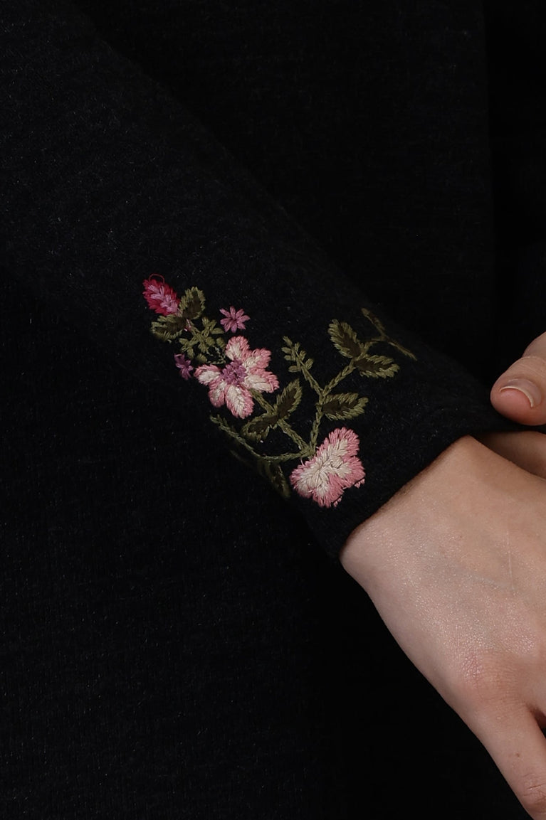 Black Floral Print Metallic Embroidery Straight Kota Kurta