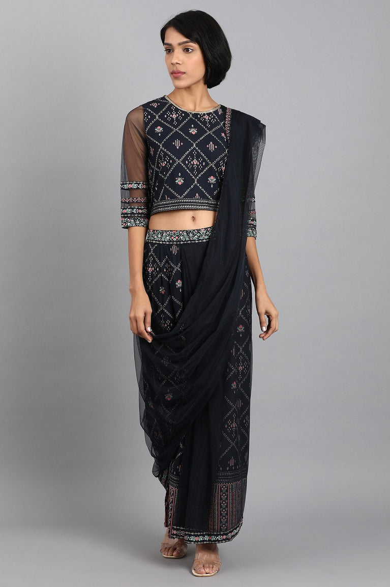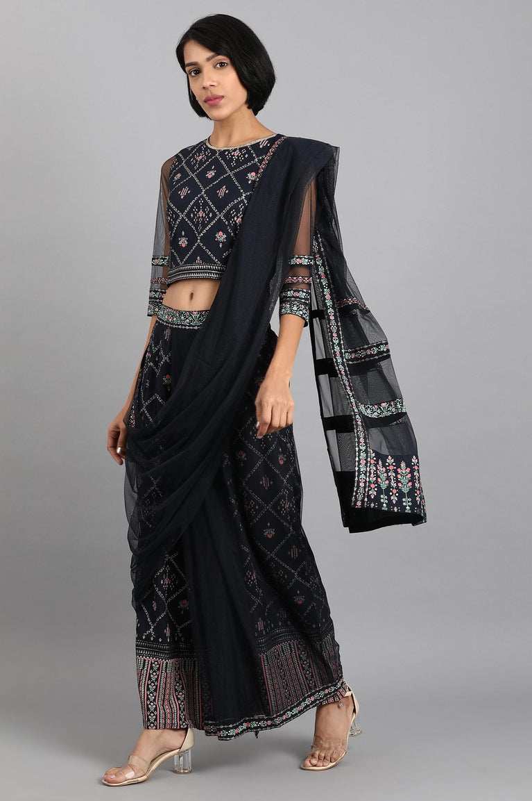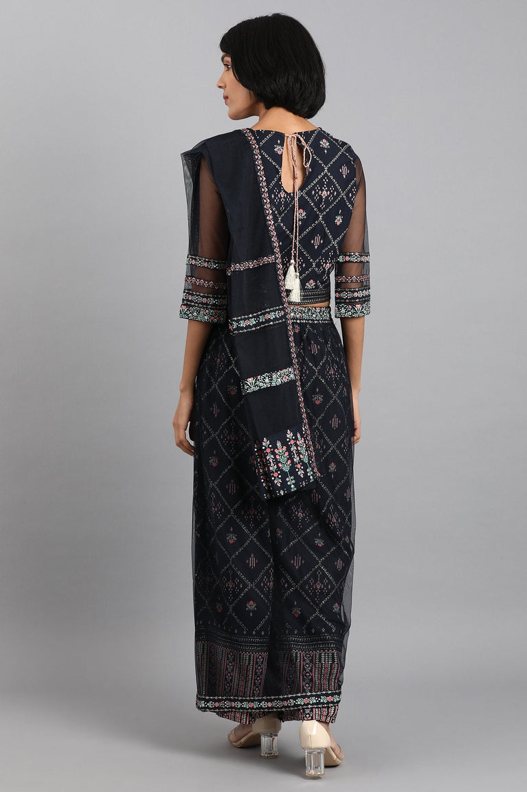 Blue round neck pleated chanderi kurta with printed detail. It is a part of pop sets.
