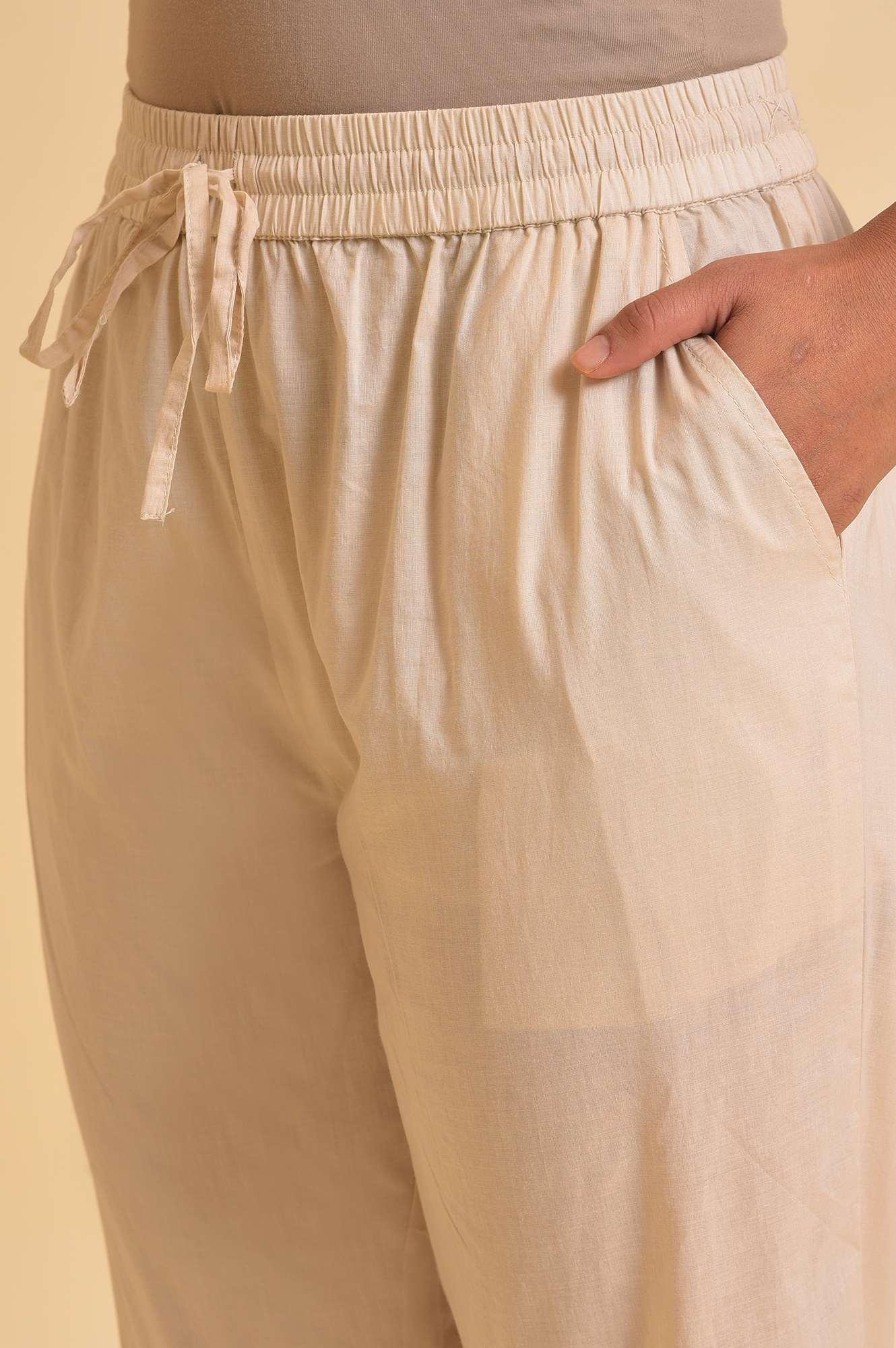 Seashell Beige Glitter Printed Straight kurta With Lace Inserts. It Is Paired With Tonal Pants With A Mix Of Thread And Metallic Embroidery.