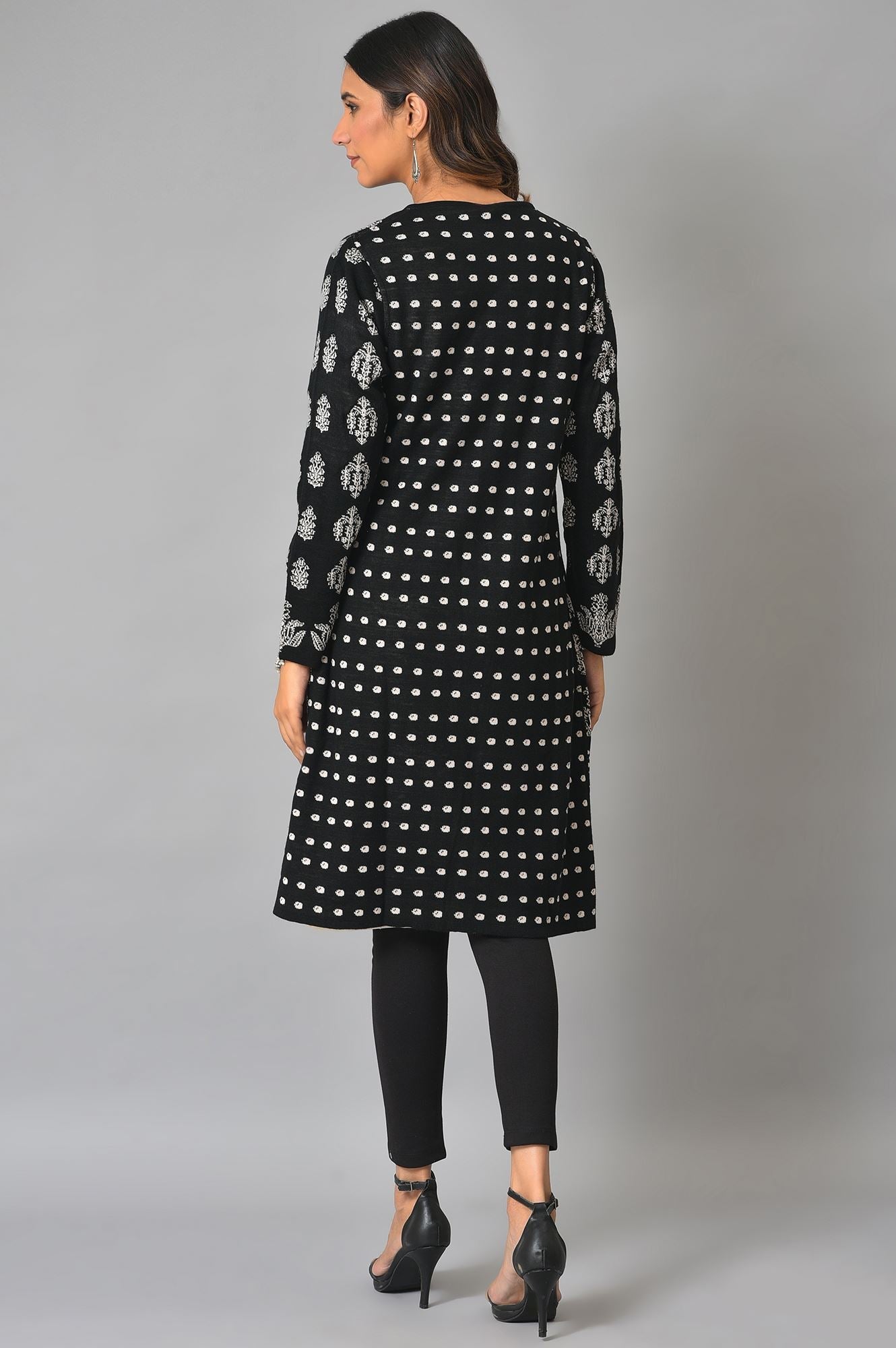 Jet Black And Sweet Lilac Front Open Reversible Jaquard Cardigan With Intricate All Over Linear Design