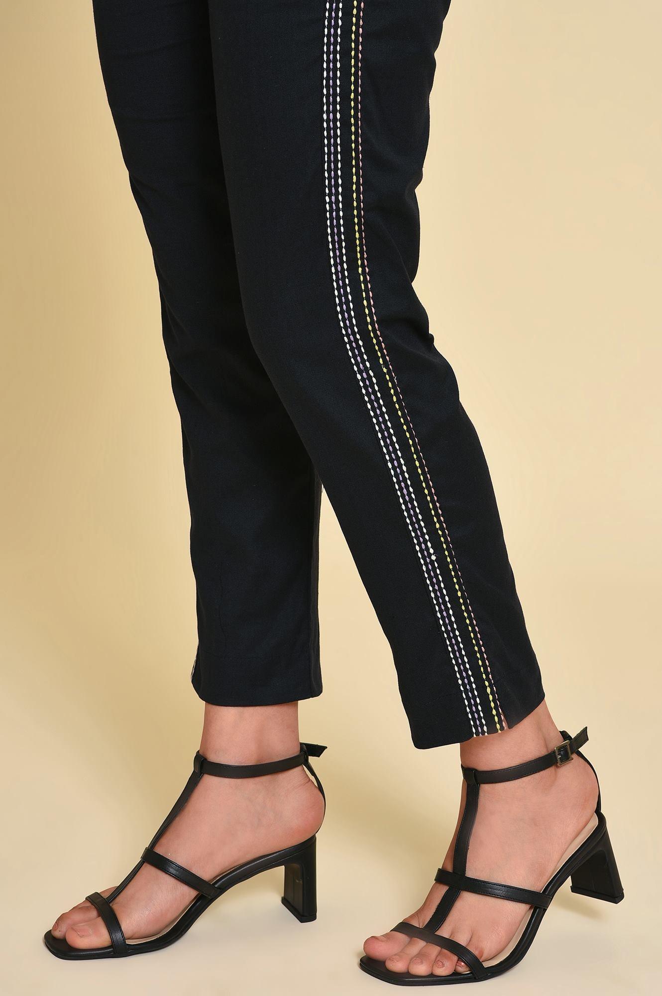 Get A Stylish Contemporary Look With This Black kurta Set. The Set Includes Abstract Print kurta With Tape Tie Up. It Also Includes Black Pants.
