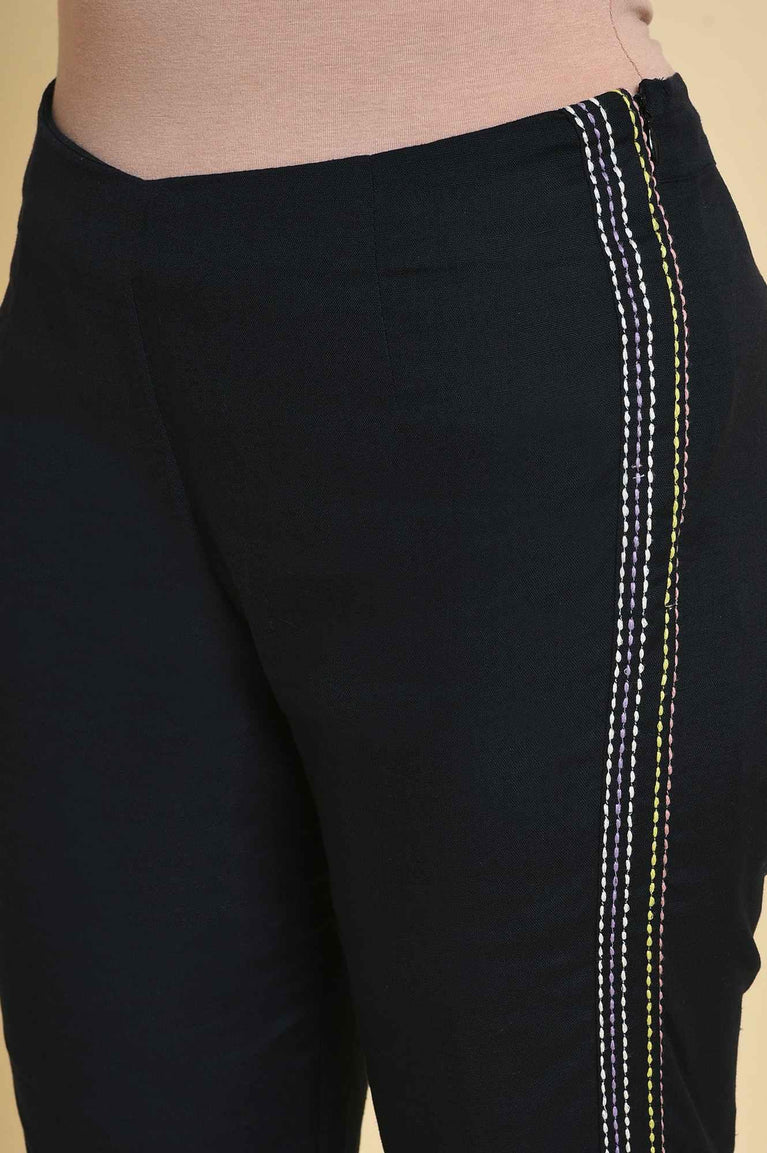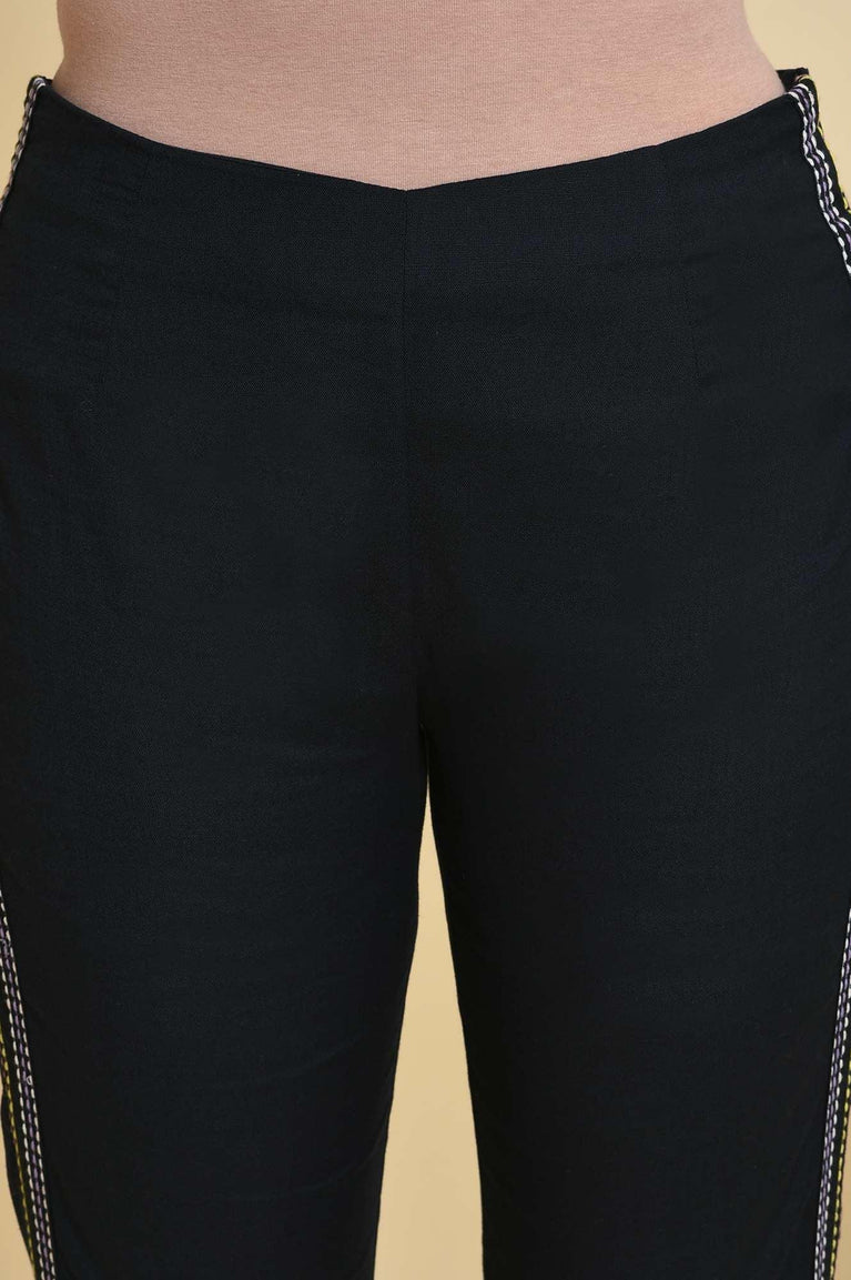 Black Solid Straight Fit Cotton Pants with YKK Zipper