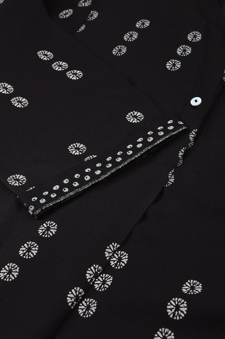 Black Rayon A-Line kurta With Asymmetric Hemline