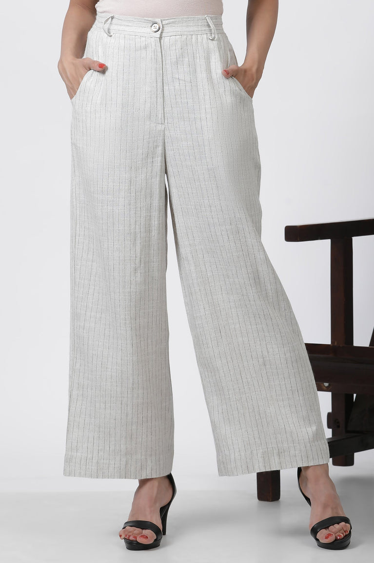Elevate Your Wardrobe With Our Newly Launched Combo Set Of Slim Pants. This Chic Set Includes Pair Of White Slim Pants Adorned With Thread Embroidery On Hemline And One Pair Of Blue Slim Pants Which Has Lace On The Hemline. Designed With A Mid-Rise And Partially Elasticated Waistband, These Pants Offer A Flattering Fit And All-Day Comfort. Perfect For Versatile Styling, This Combo Seamlessly Blends Sophistication With Ease.